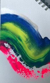 中表紙:紙にアクリル絵の具でペイント、ブランドタグを刺繍