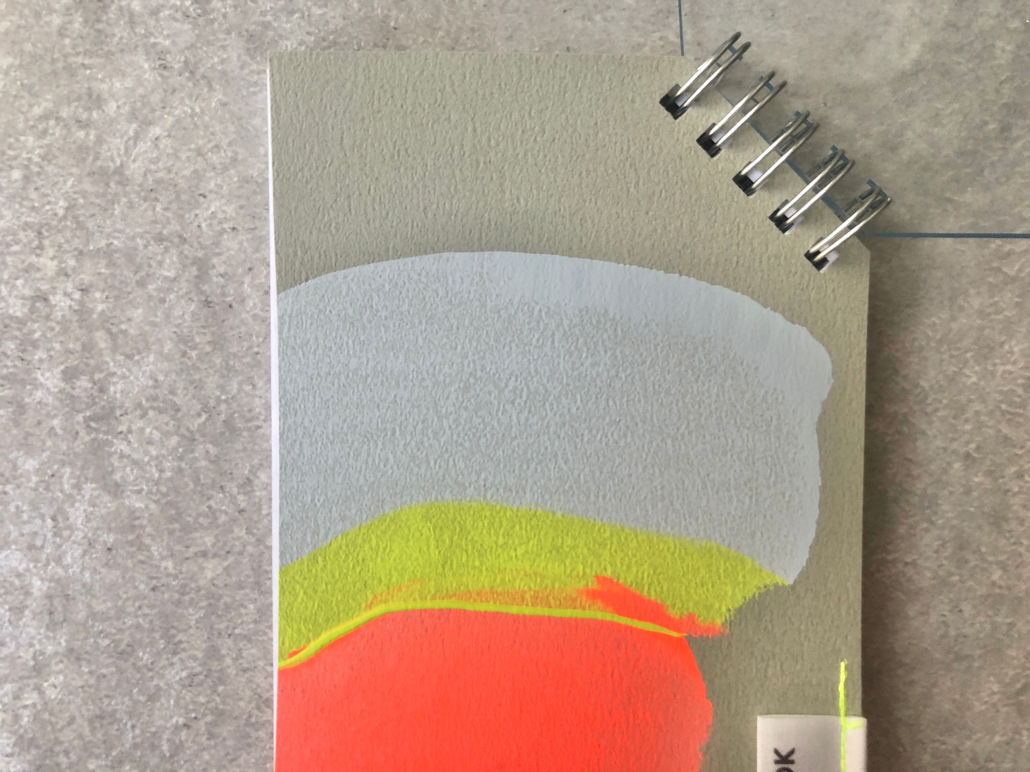 中表紙:紙にアクリル絵の具でペイント、ブランドタグを刺繍