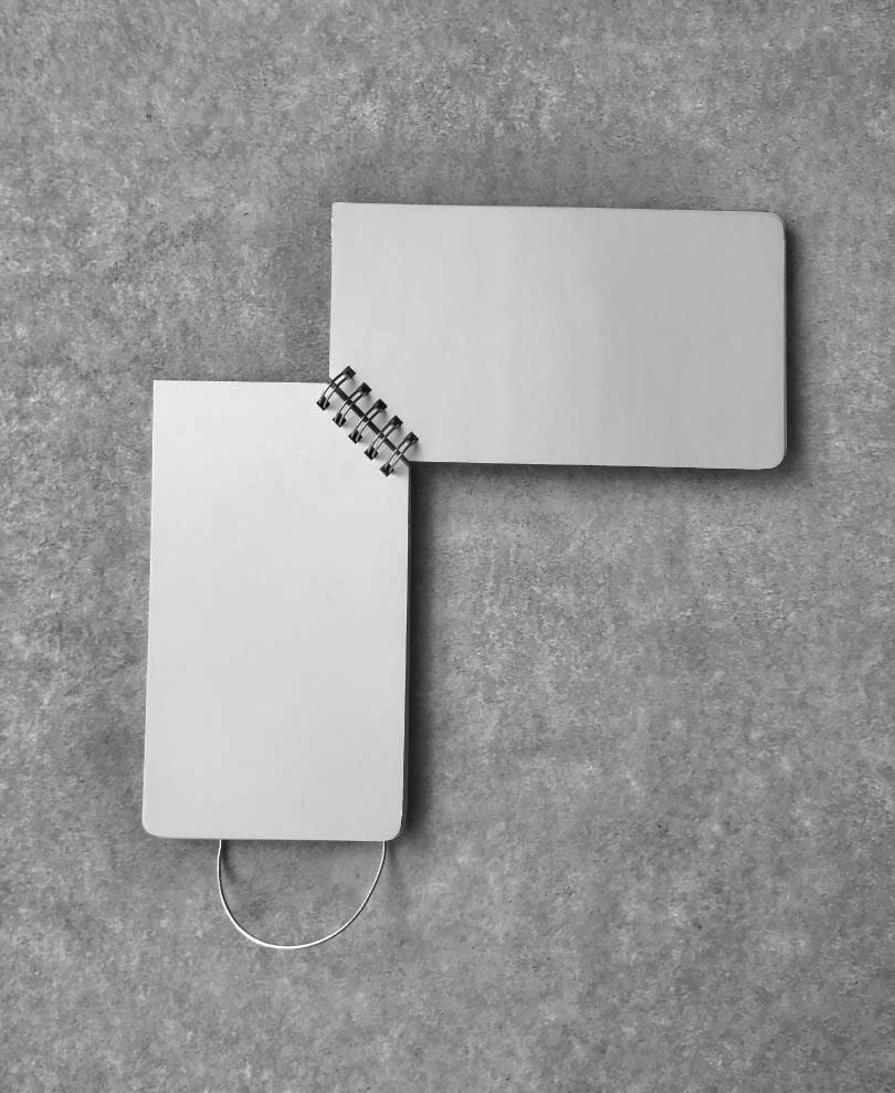 ・ページ右上の角をカットしリングを通すことで、ページの捲りやすさを重視。手の平にフィットするサイズで、立ったままの筆記にぴったり。