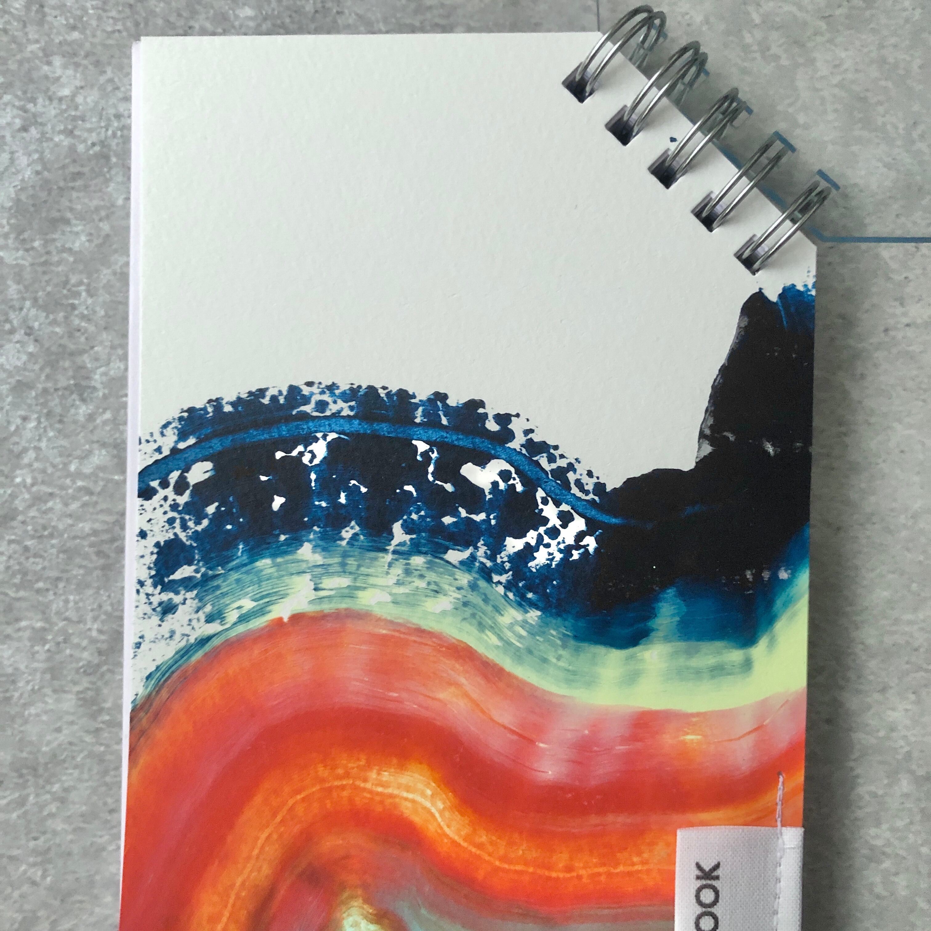 中表紙:紙にアクリル絵の具でペイント、ブランドタグを刺繍