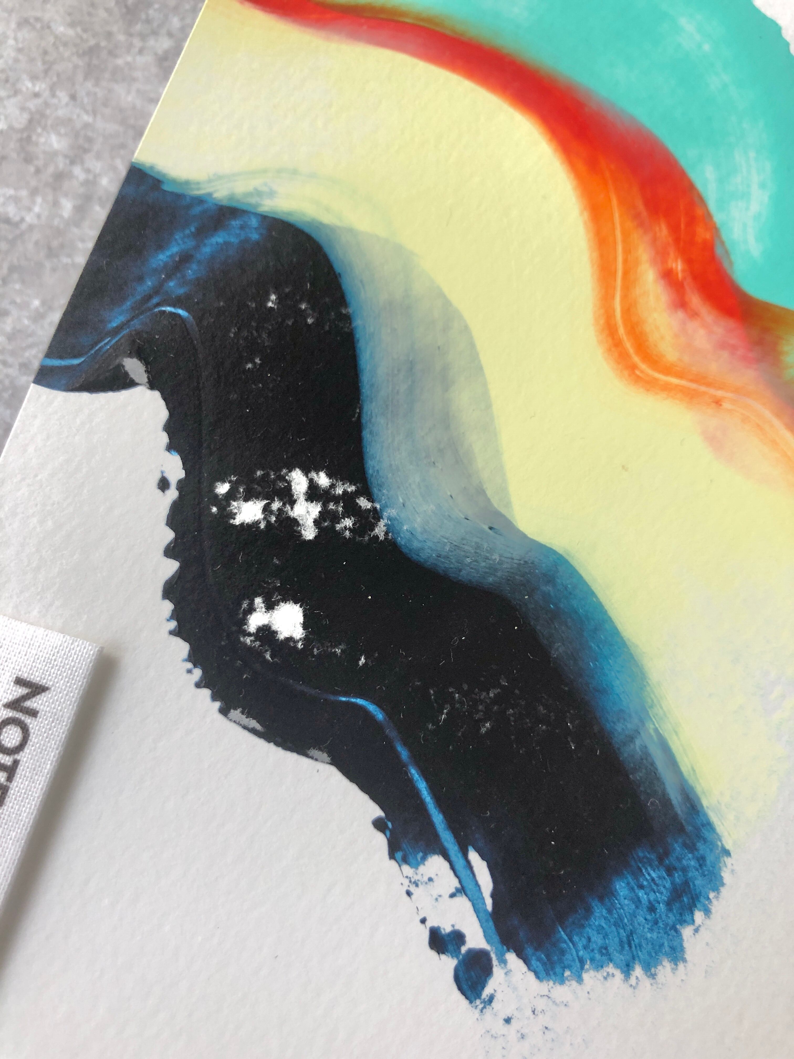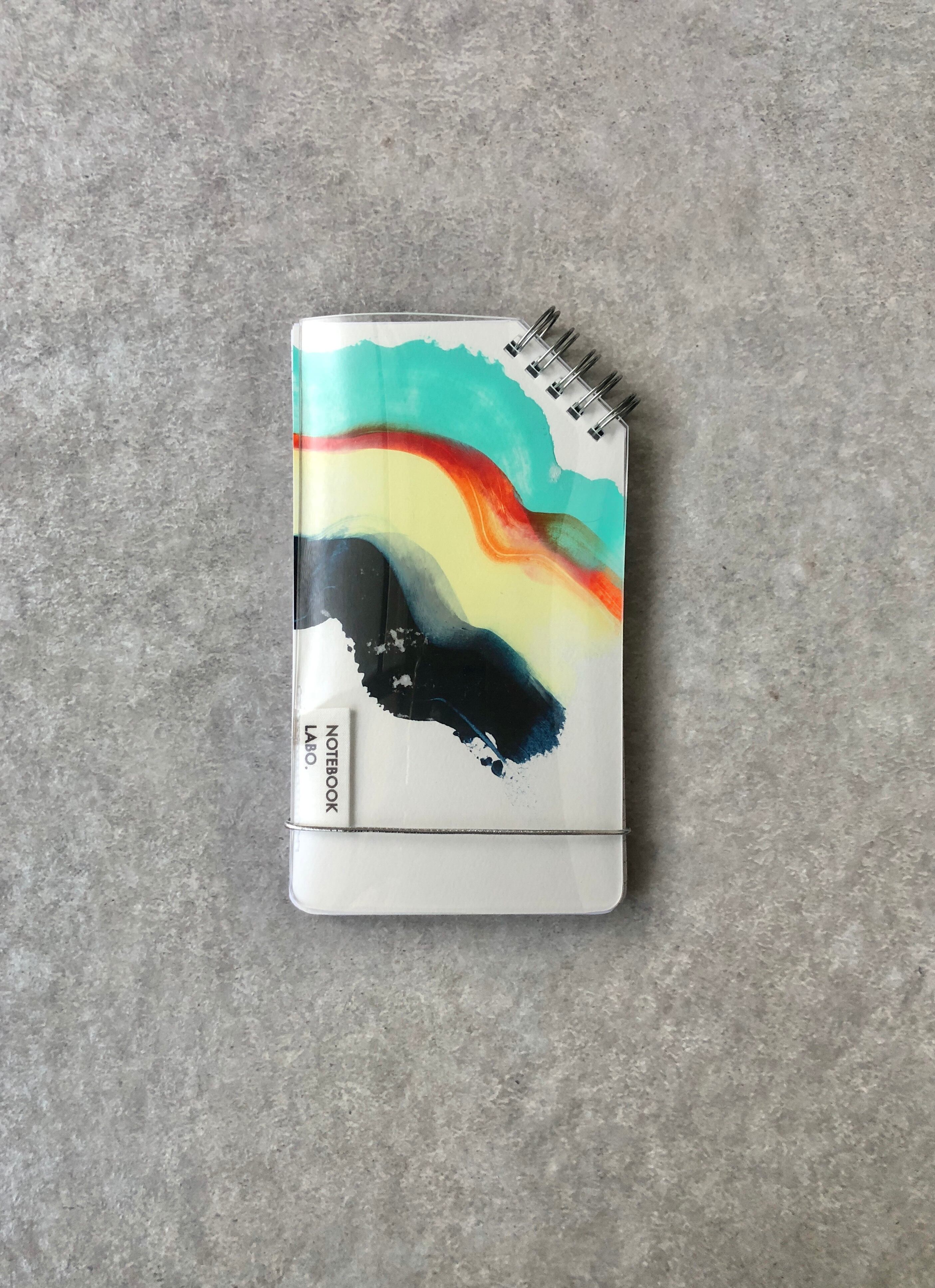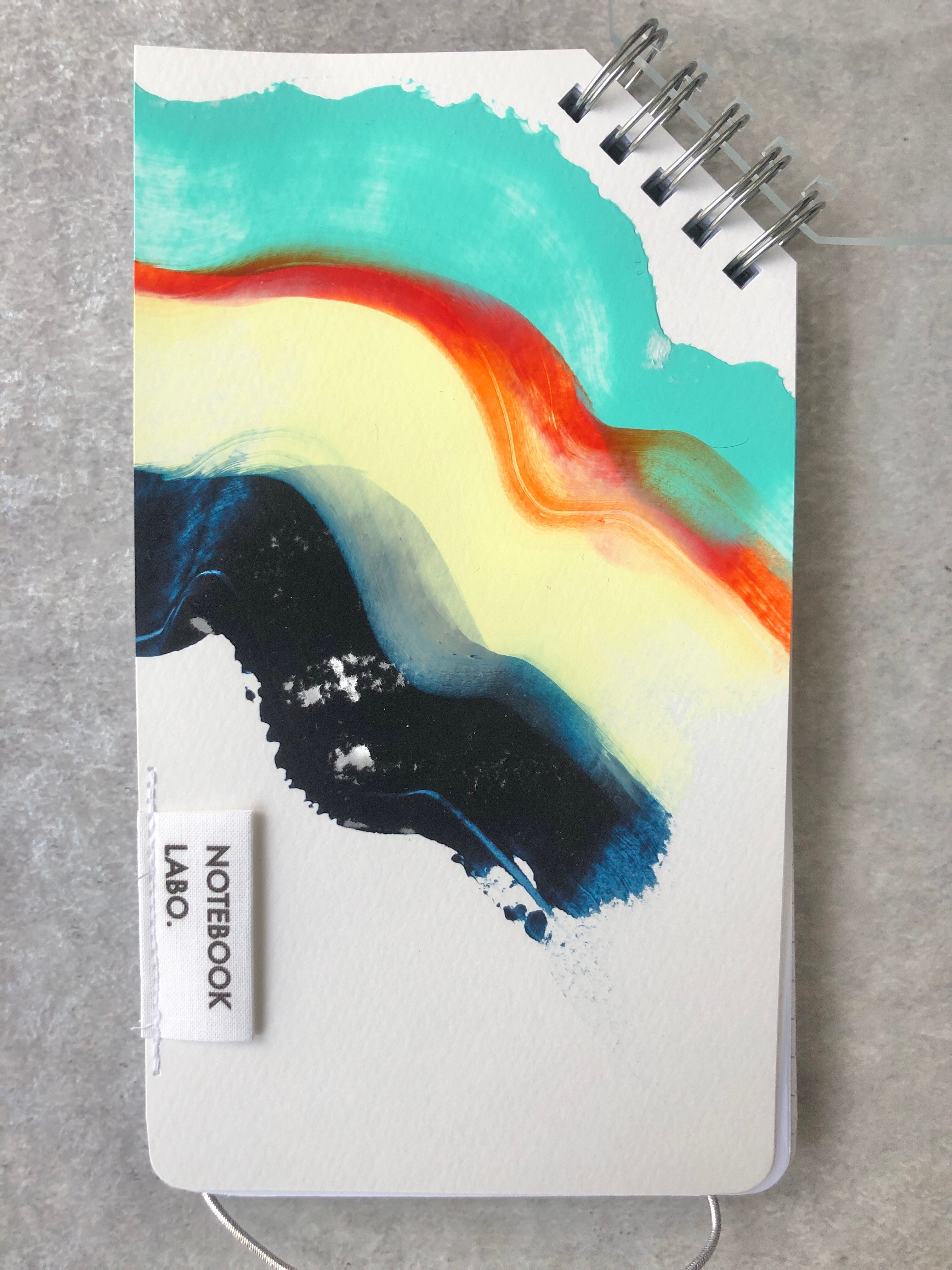 ・縫製について、軌道が曲がっていると感じられる場合があります。また、中表紙のアクリル絵の具の掠れ、滲み、絵の具乾燥時の紙の撓みや付着物が見られる場合があります。こちらは、本LABOの製品デザイン・表現の一貫であるととらえて頂けますと幸いです。また、アクリル絵の具ペイントの特性上、中表紙がひしゃげている場合がありますが、画材の特性上ご了承ください。使用するうちに、平らに近づいて行きます。