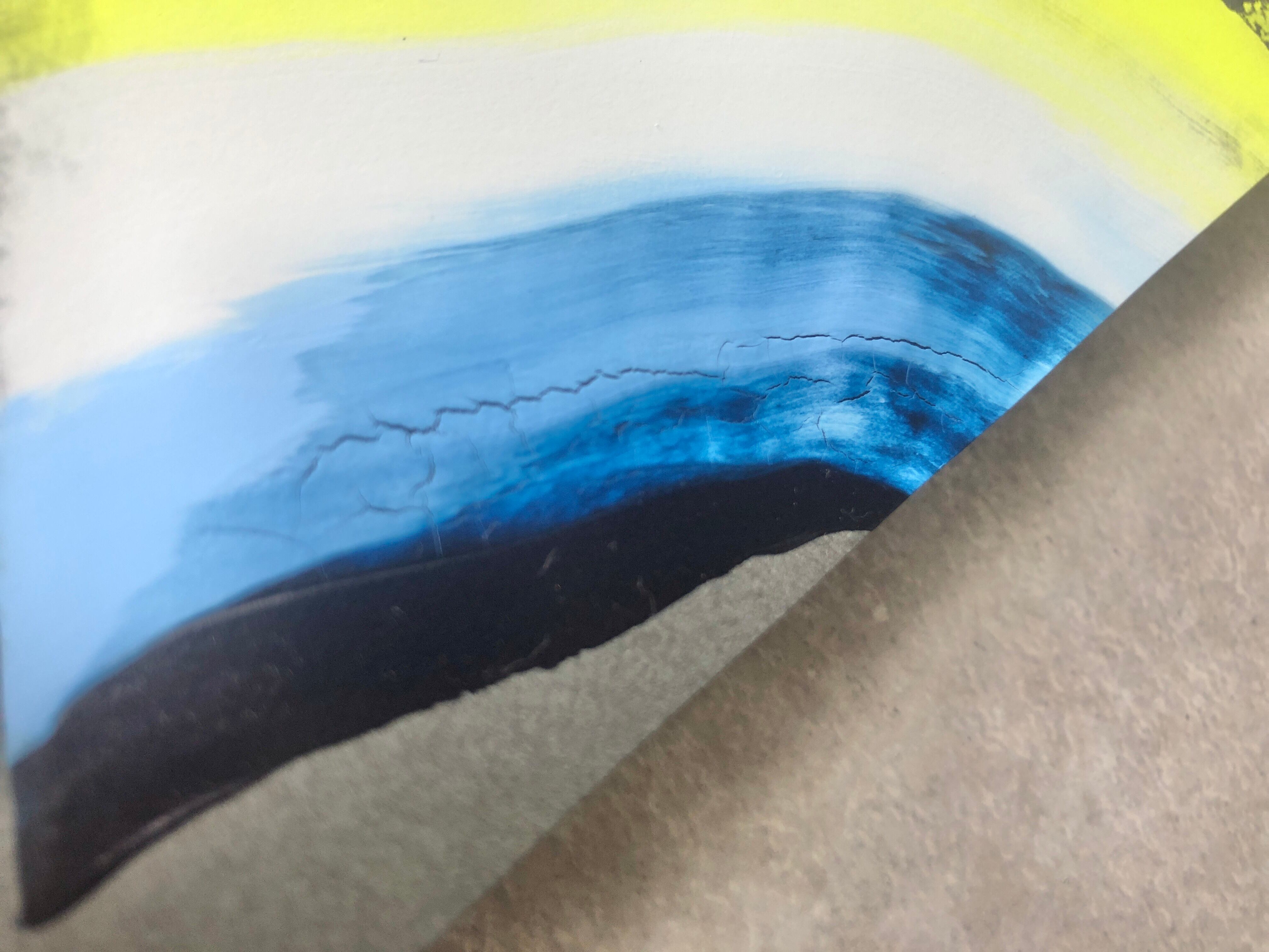 ・縫製について、軌道が曲がっていると感じられる場合があります。また、中表紙のアクリル絵の具の掠れ、滲み、絵の具乾燥時の紙の撓みや付着物が見られる場合があります。こちらは、本LABOの製品デザイン・表現の一貫であるととらえて頂けますと幸いです。