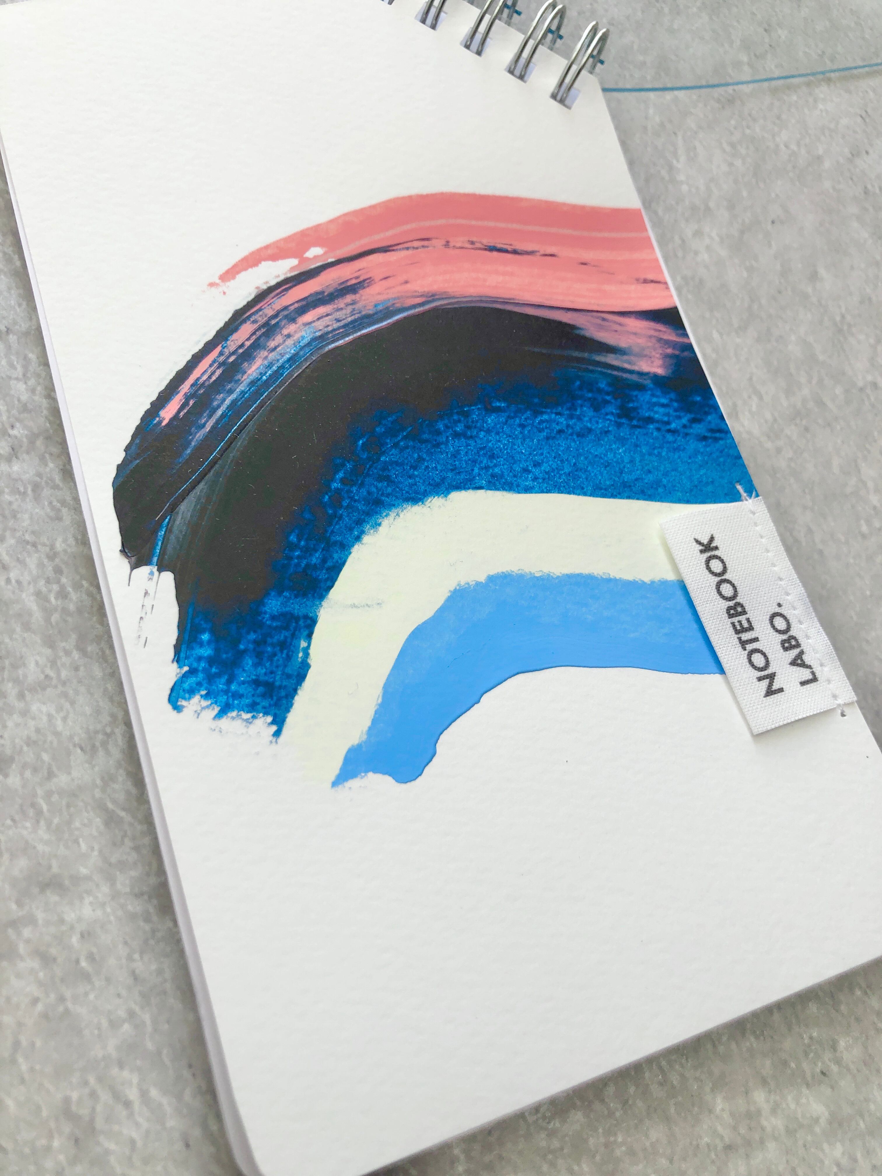 ・縫製について、軌道が曲がっていると感じられる場合があります。また、中表紙のアクリル絵の具の掠れ、滲み、絵の具乾燥時の紙の撓みや付着物が見られる場合があります。こちらは、本LABOの製品デザイン・表現の一貫であるととらえて頂けますと幸いです。また、アクリル絵の具ペイントの特性上、中表紙がひしゃげている場合がありますが、画材の特性上ご了承ください。使用するうちに、平らに近づいて行きます。