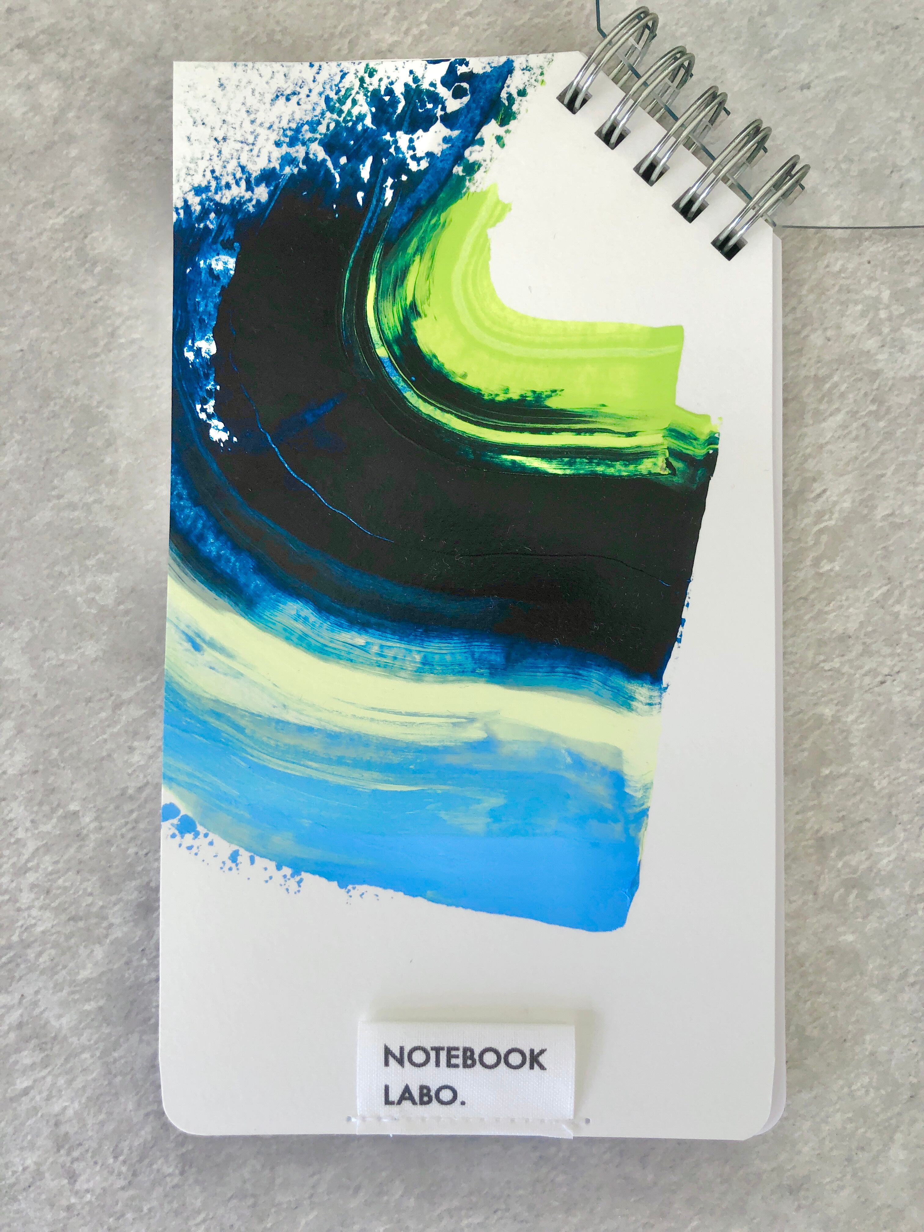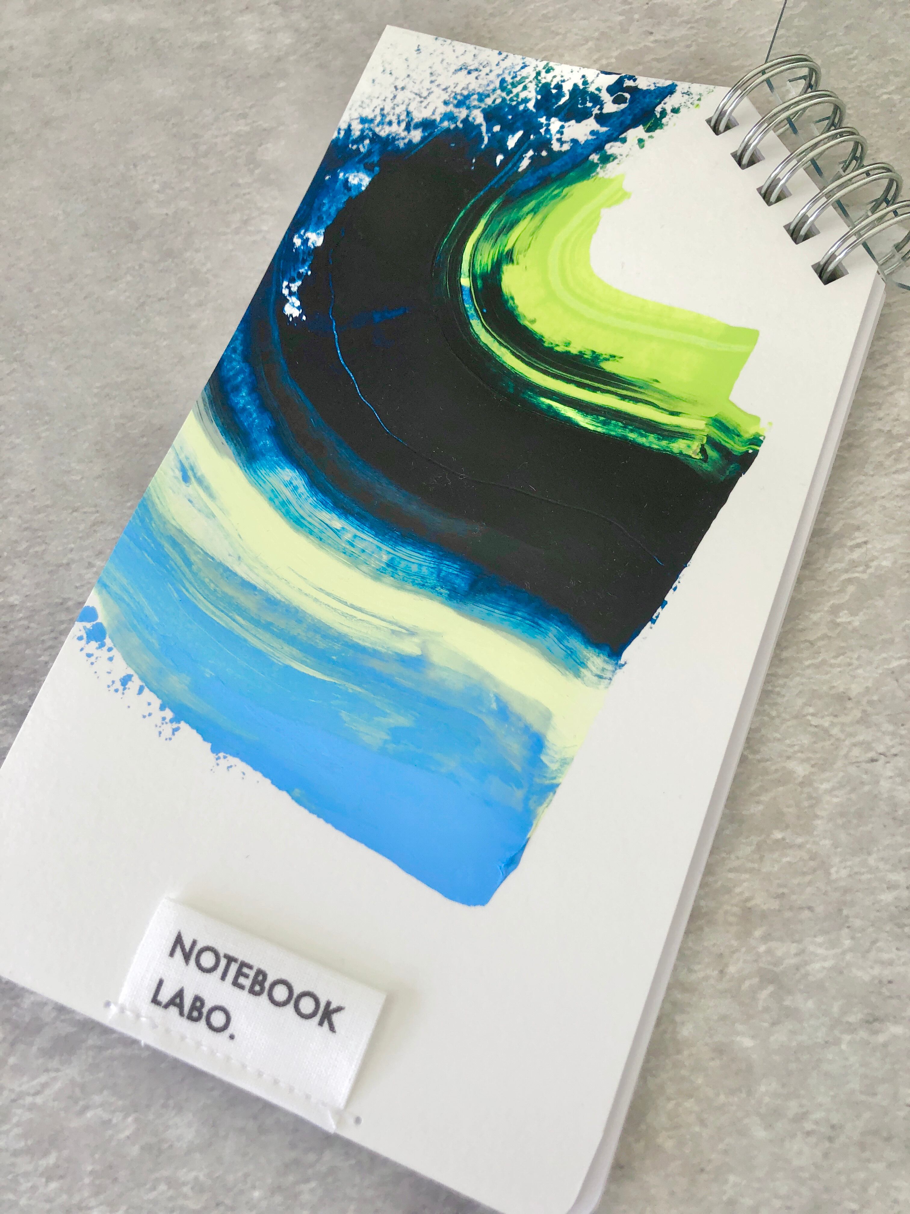 ・縫製について、軌道が曲がっていると感じられる場合があります。また、中表紙のアクリル絵の具の掠れ、滲み、絵の具乾燥時の紙の撓みや付着物が見られる場合があります。こちらは、本LABOの製品デザイン・表現の一貫であるととらえて頂けますと幸いです。また、アクリル絵の具ペイントの特性上、中表紙がひしゃげている場合がありますが、画材の特性上ご了承ください。使用するうちに、平らに近づいて行きます。