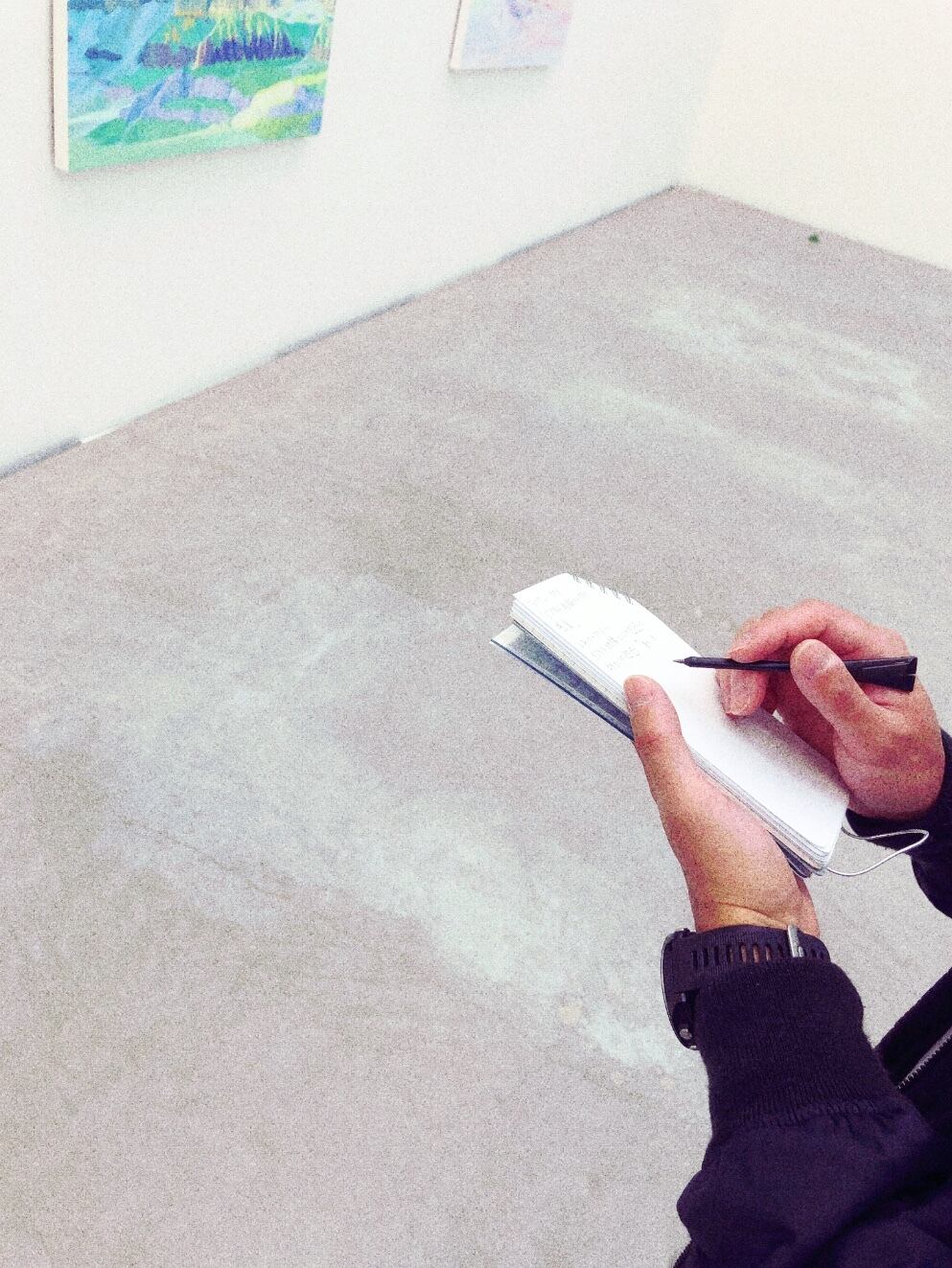 中表紙:紙にアクリル絵具でペイント。ブランドタグを刺繍。